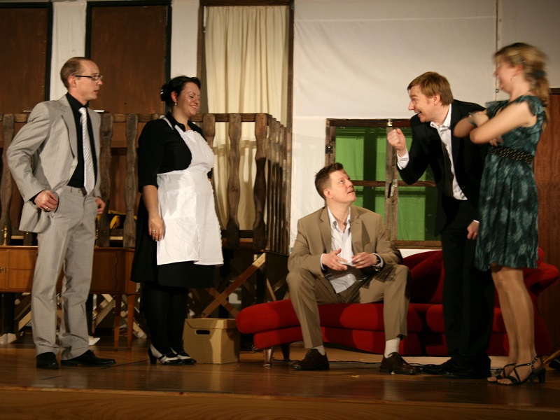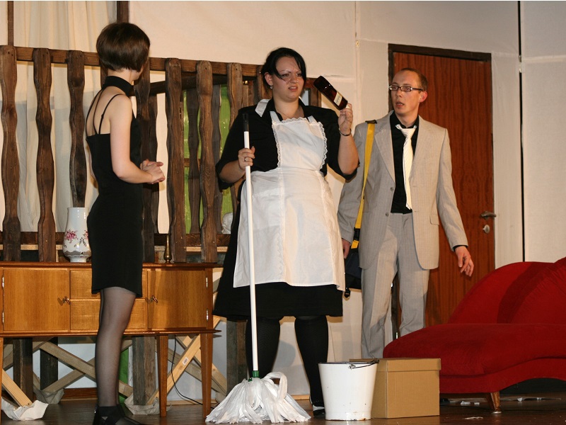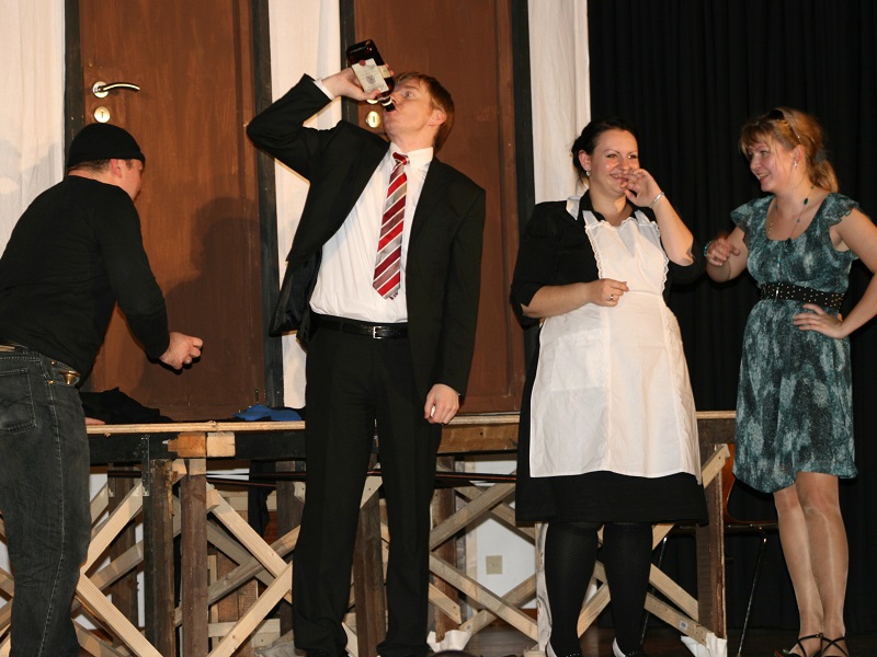 Neben den schauspielerischen Leistungen des ganzen Ensembles glänzte auch das Bühnenbild: Es war aufwändiger denn je. Ein ganzes Haus mit zwei Stockwerken hatte das TheaterLaien auf der Bühne zusammengezimmert. Eine Haustür, ein Fenster, sechs abgehende Zimmertüren und eine Galerie boten viel Platz für sich überschneidende Ab- und Aufgänge. Das Chaos auf der Bühne wurde so perfekt, und der Abend für die Zuschauer unvergesslich. „Das TheaterLaien war noch besser als sonst“, war darum die einhellige Meinung des Publikums.