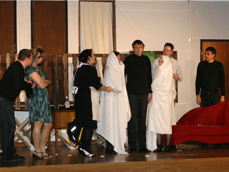 Ich darf mit Recht behaupten, dass wir mit Michael Frayns „Der nackte Wahnsinn“ das mit Abstand aufwendigste Stück in der Geschichte des TheaterLaien aufführen – in Bezug auf den Text, in Bezug auf die Abläufe, in Bezug auf das Bühnenbild. Alle neun Akteure, die Bühnenbildcrew, die Verantwortlichen für Kostüme und Requisiten, der Gesamtleiter und der Regisseur haben seit Mitte Juni alles gegeben, damit zur heutigen Aufführung alles perfekt ist.