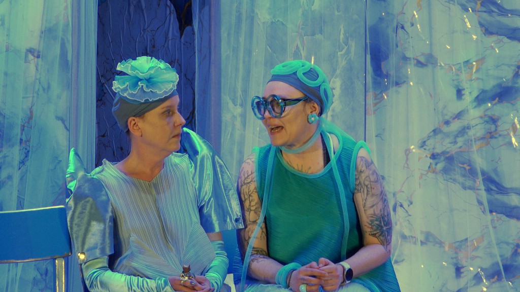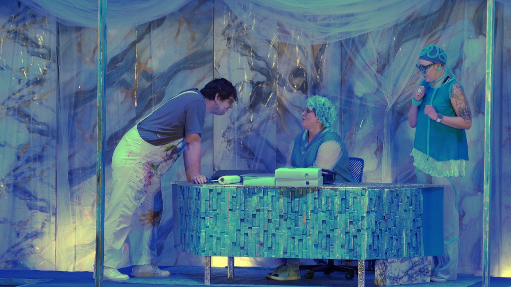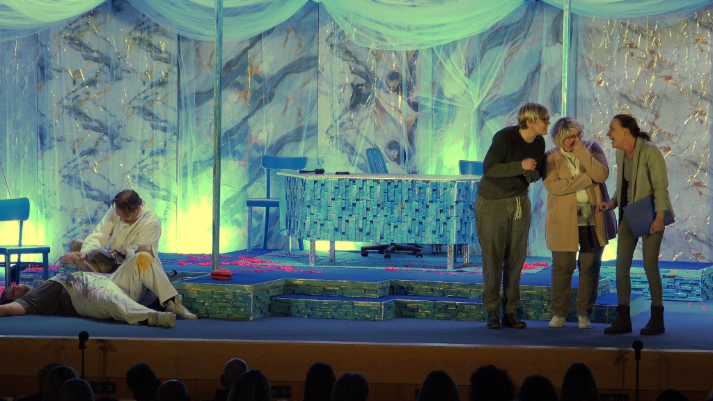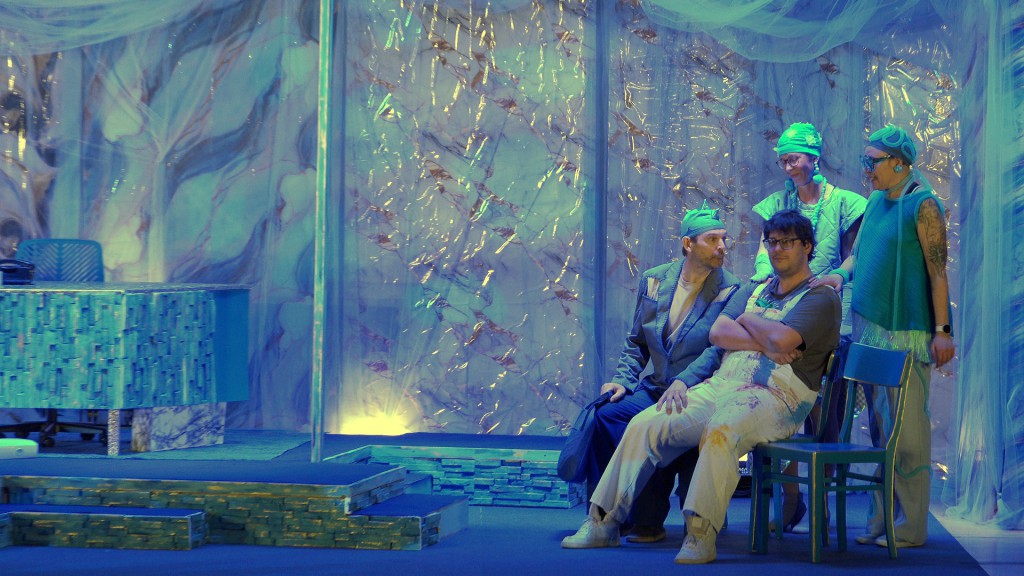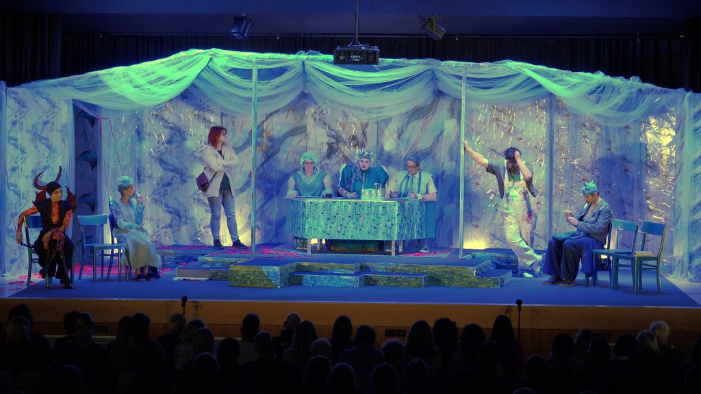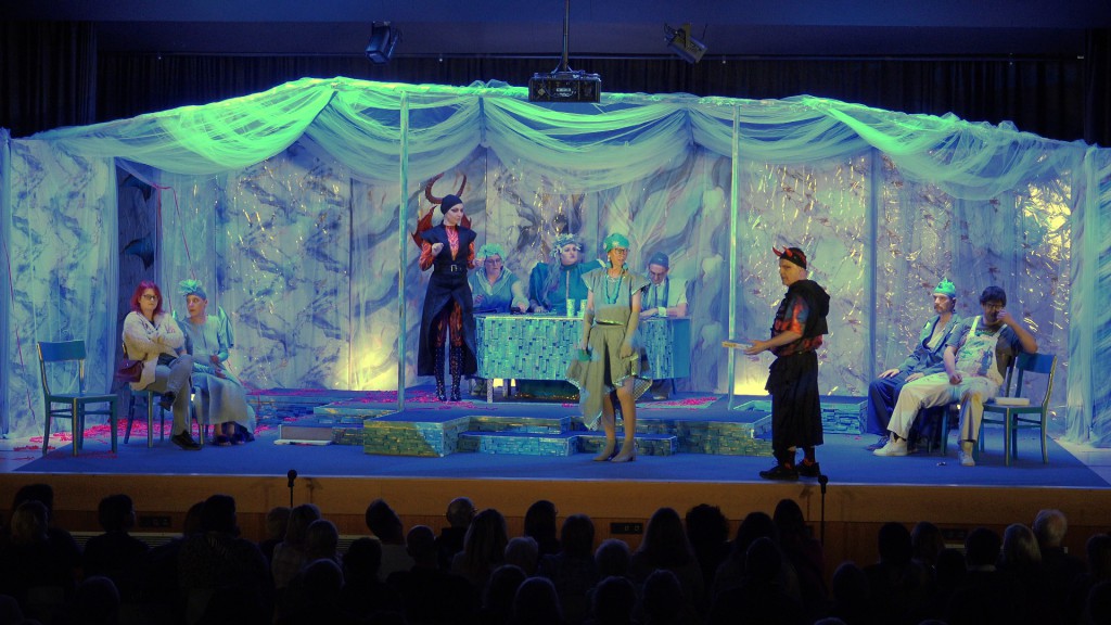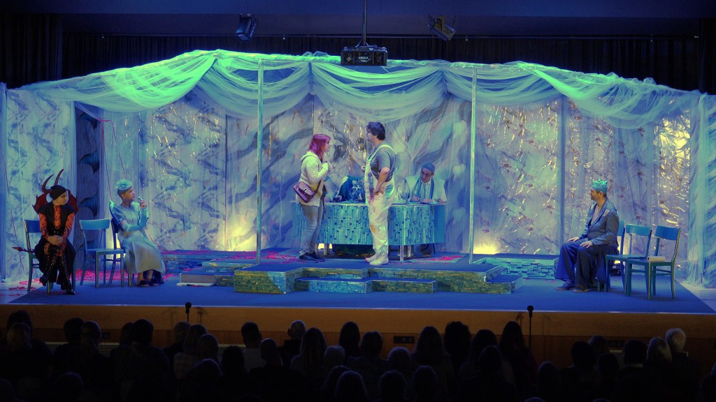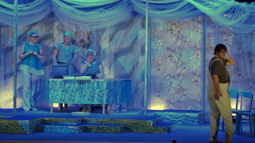 Das Bühnenbild ist ein echter Traum in Blau – himmelsgleich. Unsere Bühnenbildner haben einmal mehr großartige Arbeit geleistet und mit viel Kreativität und Engagement alles möglich gemacht.