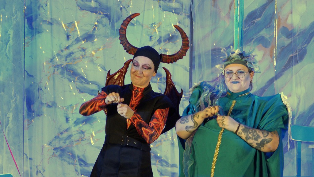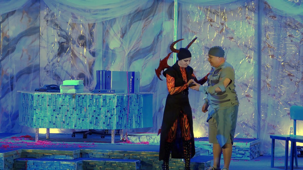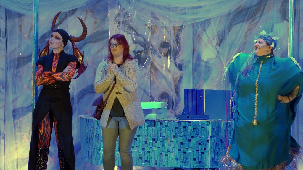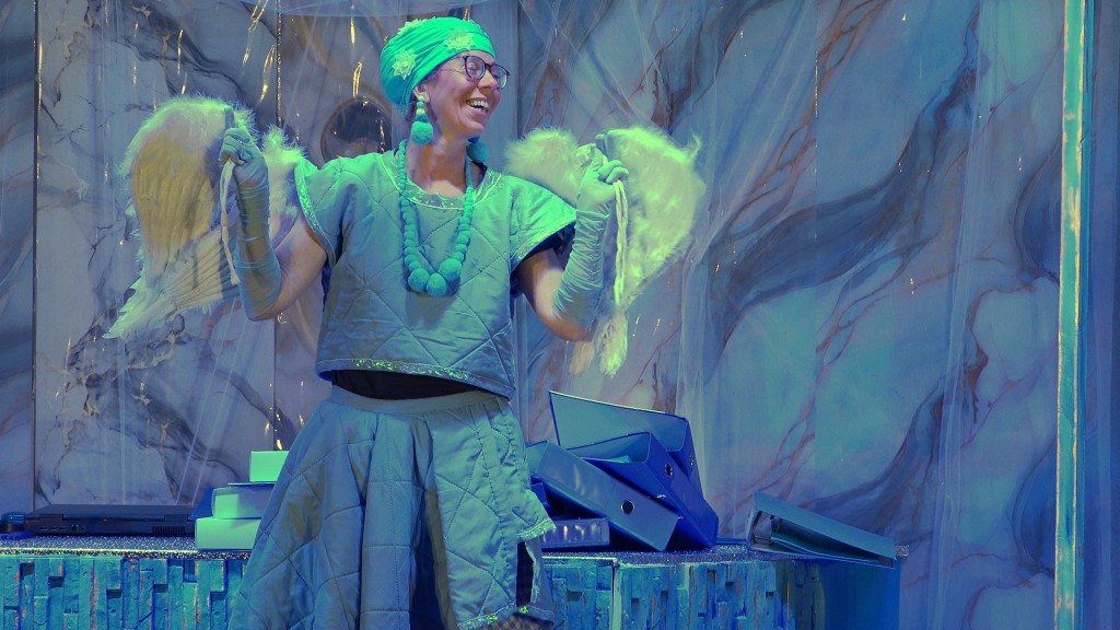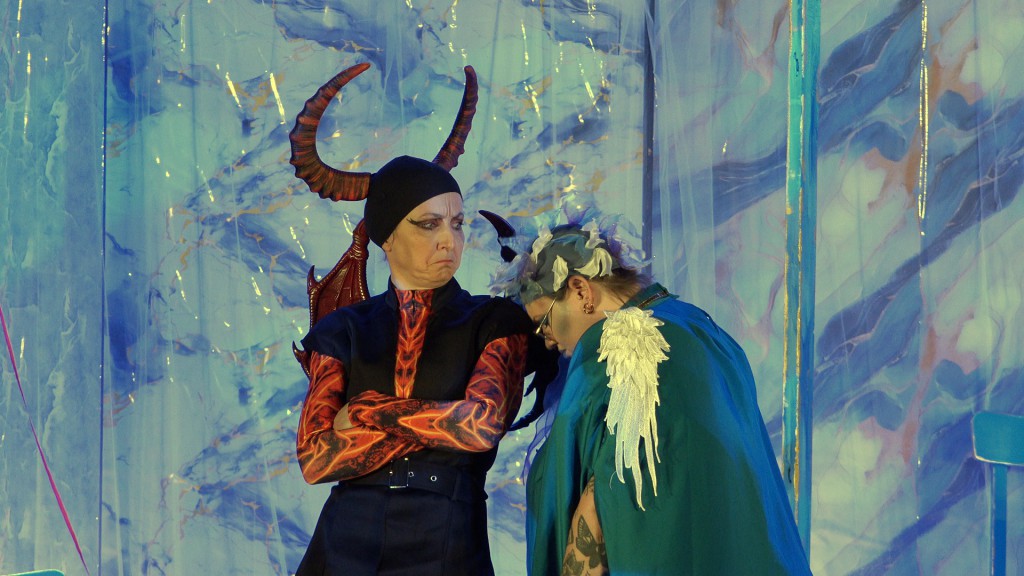 Passend zu dieser surrealen Welt hat unser Kostümteam für die Vertreter der himmlischen wie höllischen Zunft Kleidung entworfen, die nicht nur einzigartig ist, sondern auch auf jeder Fashion Week für Furore sorgen würde. So haben wir nun ein Theaterstück, wo alles ein bisschen mehr, ein bisschen kurioser, ein bisschen drüber ist.