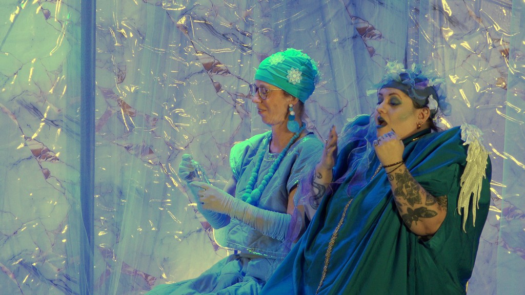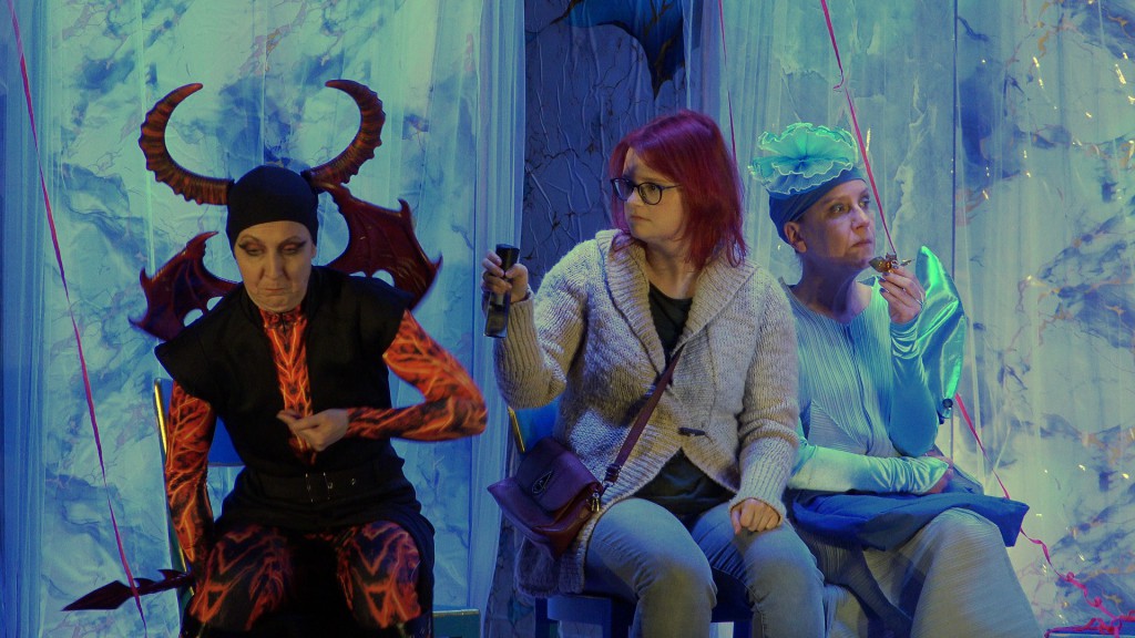 Und weil eben niemand genau weiß, wie es dort aussieht, konnten wir hier unserer Phantasie zum Bühnenbild freien Lauf lassen und ein Ambiente kreieren, in welchem sich die spontan dort hineingeratene Hauptperson zu Recht fragt “Wo bin ich denn hier gelandet?”