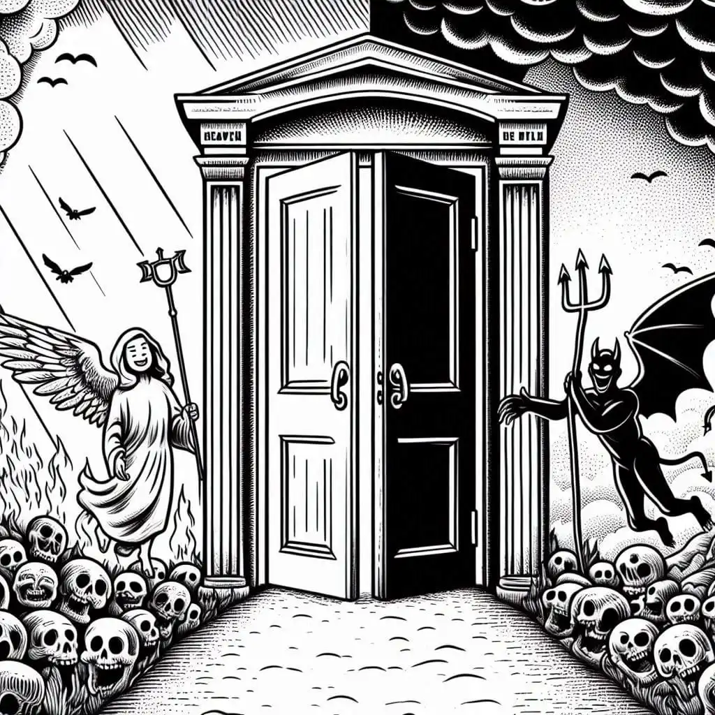 Wer rechnet aber auch auf dem Weg zum Garten Eden mit solch einer Flut von bürokratischem Unsinn? Auch genervte Erzengel, die Flyer verteilend vor der Himmelspforte Werbung fürs Himmelreich machen müssen, und ein Teufel mit einem Burnout entsprechen nicht unbedingt den vorherrschenden Vorstellungen.